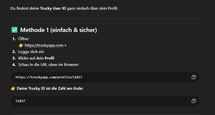 Um den Bereich voll umfänglich nutzen zu können, muss zwingend die Trucky ID bei der Regestrierung angegeben werden, da das Levelsystem als Grundlage die Touren bzw. Daten aus Trucky benötigt.