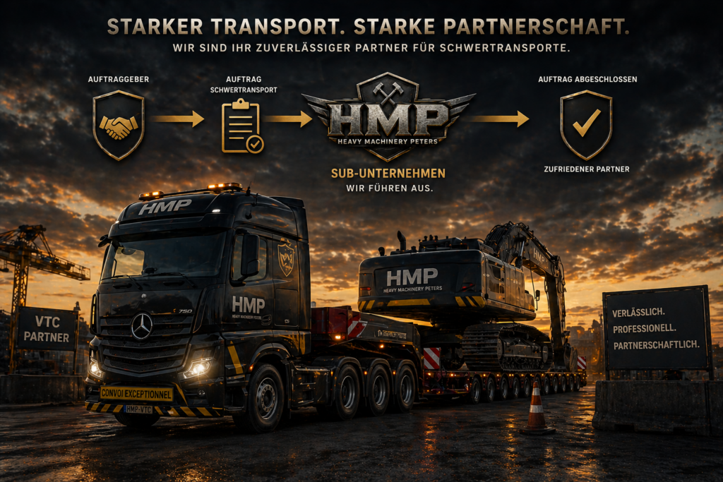 Heavy Machinery Peters (HMP) steht für zuverlässige und strukturierte Abläufe in den Bereichen Schwerlasttransport, industrielle Logistik sowie Bau- und Infrastrukturprojekte. Unser Leistungsspektrum vereint Transport und Maschinenarbeit unter einem klar organisierten Konzept.